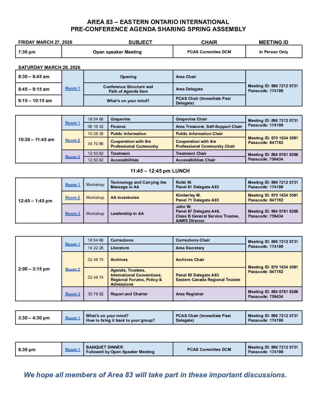 2026 Pre Conference Agenda Sharing Sessions Schedule